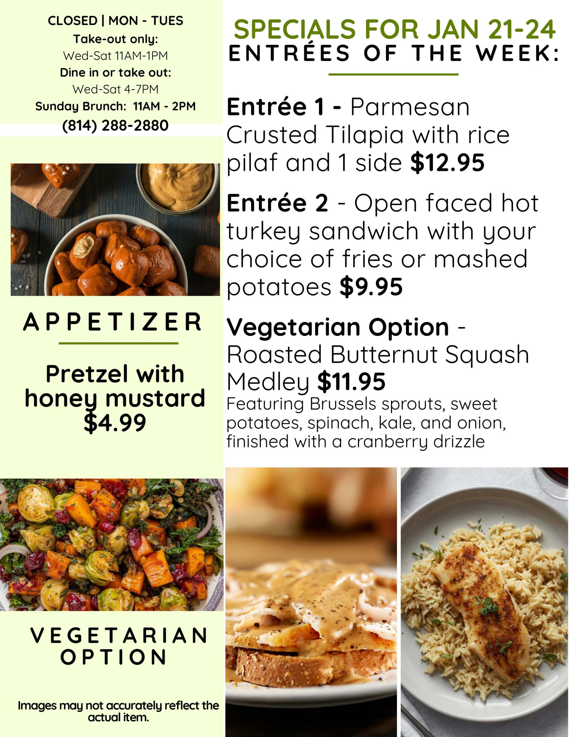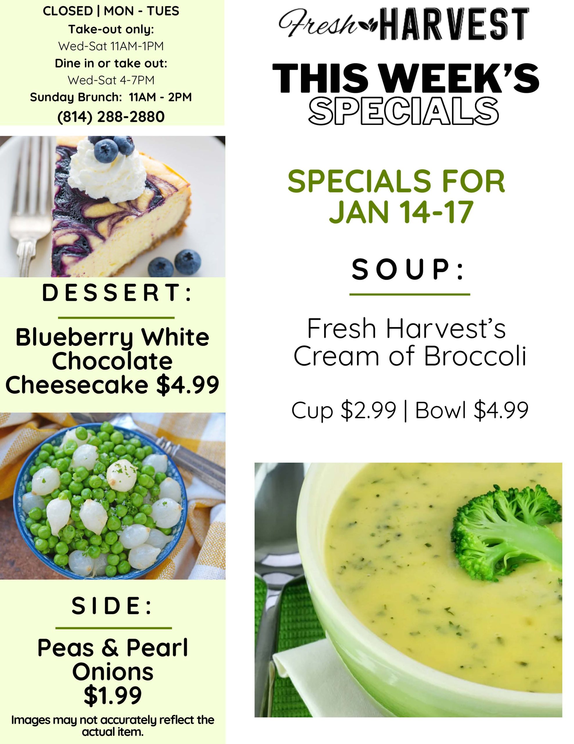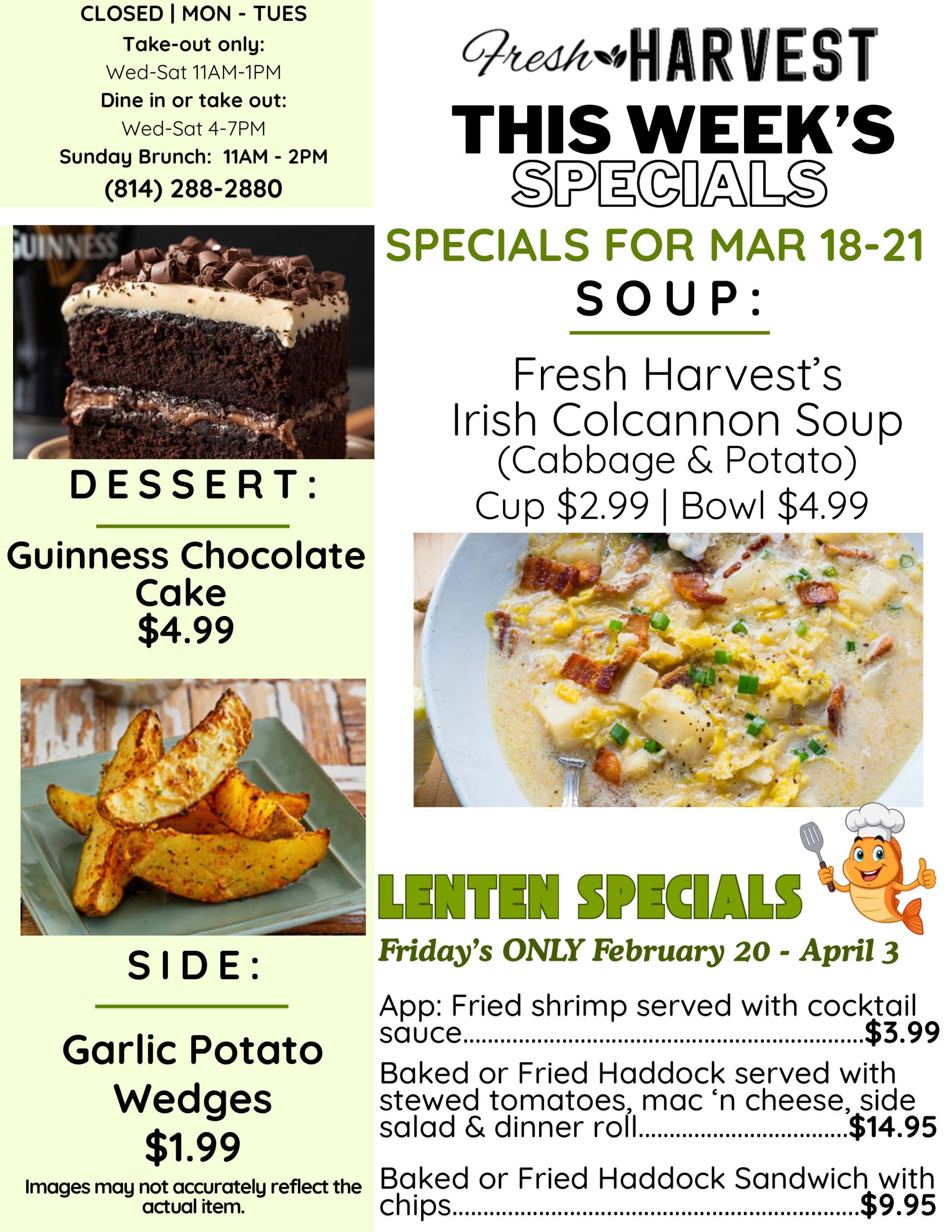 Get ready for a delicious adventure at Fresh Harvest! Alongside our tantalizing menu and special seasonal selections, we’re thrilled to bring you a sensational weekly special every Wednesday through Saturday! Imagine savoring a brand-new appetizer or indulging in a delightful dessert that changes each week! The possibilities are endless, making each visit an exciting culinary journey you won’t want to miss!
